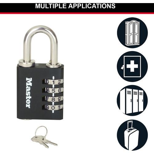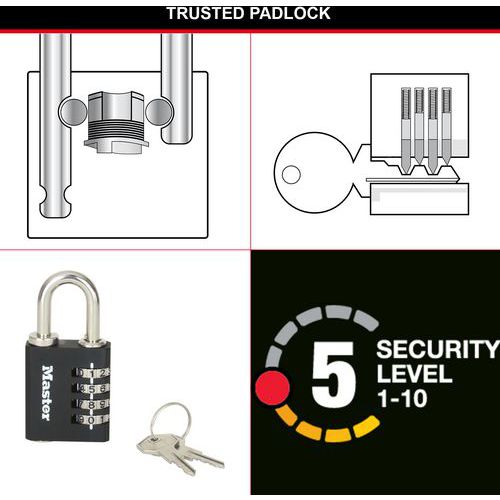| Descrizione | Lucchetti con combinazione e chiave di sicurezza 7641EURDBLK, Ansa Ø: 6 mm, N. di rotelle: 4 |