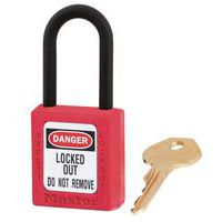 Lucchetti non conduttivi: archetto e corpo in plastica composita Zenex®. Ideali per isolamento elettrico, aree circoscritte, settore medico, militare e minerario. H archetto in nylon (mm): 38 Chiave in ottone.