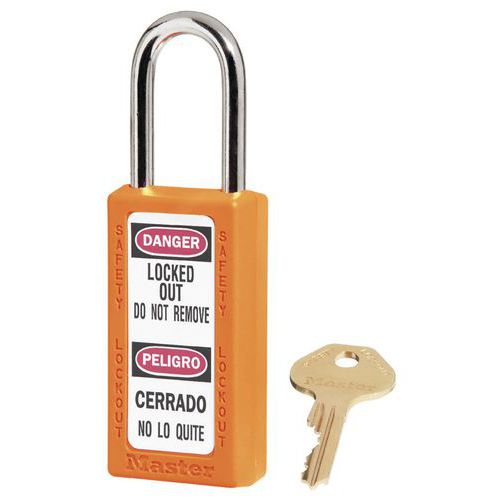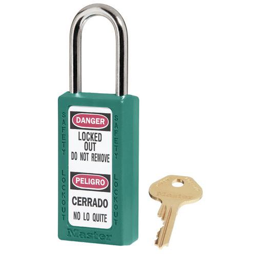 Cilindro a 6 pin con profilo chiave specifico. La funzione di estrazione chiave garantisce che il lucchetto non venga accidentalmente lasciato aperto. La struttura in materiale termoplastico Zenex™ resiste alla corrosione, all’esposizione UV, alle temperature estreme (da -40°C a +90°C) e agli agenti chimici. L’archetto Ø 6mm, in acciaio rivestito, resiste alla corrosione. Include 1 chiave, in conformità al principio “un dipendente, un lucchetto, una chiave”. Include etichette con la scritta “PERICOLO”/”DI PROPRIETÀ DI” in FR, ENG e SP. Per i modelli con chiave maestra richiedere preventivo - chiave non inclusa.