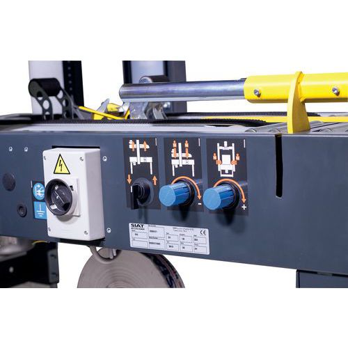 Tendinastro semiautomatico per scatole di cartone.