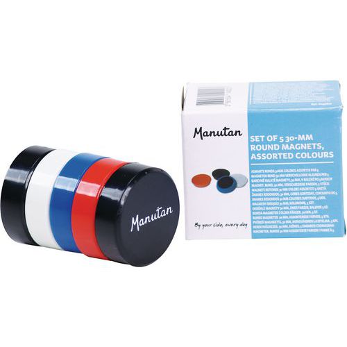 - Magnete rotondo in colori assortiti - Manutan Expert - Magnete rotondo perfetto per conservare documenti su superfici magnetiche. Colori assortiti: blu, nero e rosso.
