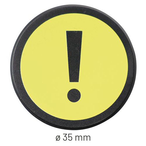Magnete tondo con simbolo del punto esclamativo, Tipo: Punto esclamativo, Colore: Giallo, Ø: 35 mm Magnete tondo con simbolo del punto esclamativo, Tipo: Punto esclamativo, Colore: Giallo, Ø: 35 mm