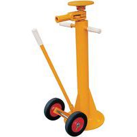 - Cavalletto di sicurezza per il carico/scarico dei rimorchi, con una portata di 15T. Altezza regolabile da 1080 mm a 1280 mm (5 livelli) per limitare lo spazio con il rimorchio. Grande superficie d'appoggio di 1200 mm in legno e staffe 140x120mm. Ruote con diametro di 200 mm antiforatura (rimovibili). Posizionabile facilmente sulla parte anteriore del rimorchio staccato (grazie alle 2 ruote rimovibili), evita il rischio di oscillazione in caso di guasto dei cavalletti di stazionamento.