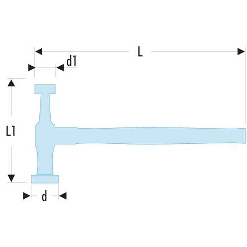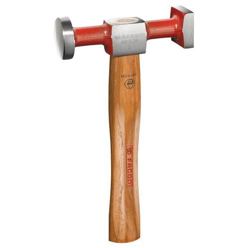 Martello allungatore e livellante. 1 testa convessa e 1 testa quadrata piatta. Raccordo di sicurezza. Lucidatura fine delle superfici da piallare. Manico di legno Hickory. Manico e cuneo di ricambio: 211.MH26.