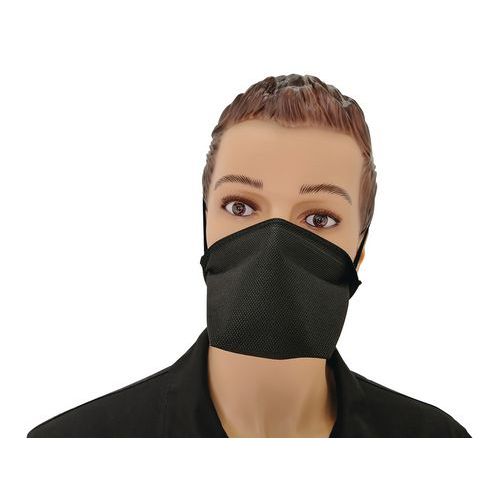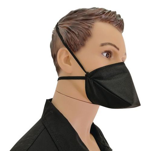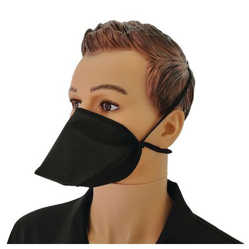 Composizione: 1 mascherina nera a becco d'anatra 100% polipropilene, 2 elastici dietro la nuca.