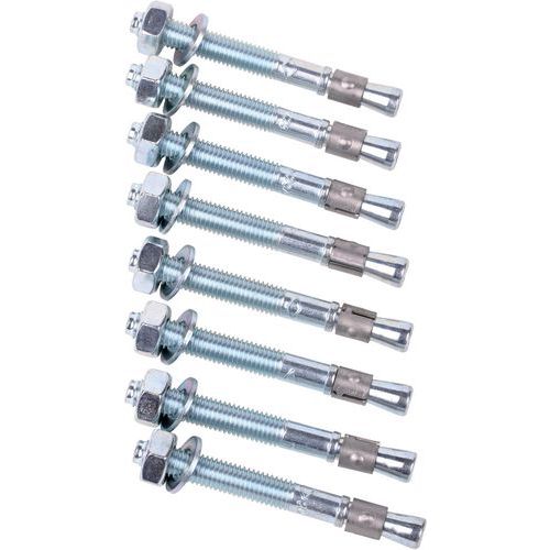 Uso interno ed esterno. Per il fissaggio di costruzioni metalliche, profili metallici, piastre di base, supporti, strutture in legno, travi e simili. Acciaio. Galvanizzato. Argento.