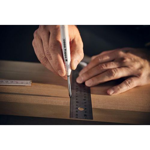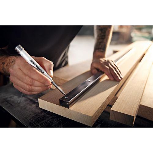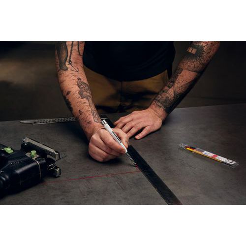 | Descrizione | Matita da cantiere e-8880 con ricarica, Colore: Grigio, Ø: 44 mm, Lunghezza: 26 mm, Peso: 65 g, Punta Ø: 3 mm |