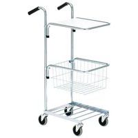 | Descrizione | Mini carrello grigio con ripiano e cestello, Portata: 50 kg, Altezza totale: 1065 mm |