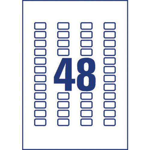 Mini-etichetta Avery, N. di etichette/foglio: 48, N. di etichette: 1200, Lunghezza Etichetta: 22 mm Mini-etichetta Avery, N. di etichette/foglio: 48, N. di etichette: 1200, Lunghezza Etichetta: 22 mm