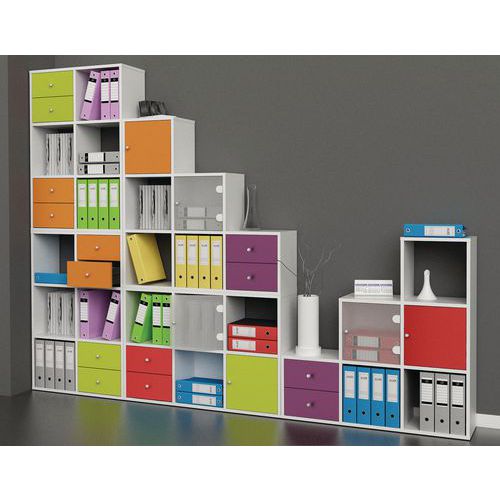 Componete un armadio che si integra perfettamente nell'ambiente. Aggiungete ai moduli i cassetti e/o le ante (da ordinare separatamente). Ideale per separare gli spazi o disporre di un contenitore sotto una scala, una finestra o in una mansarda