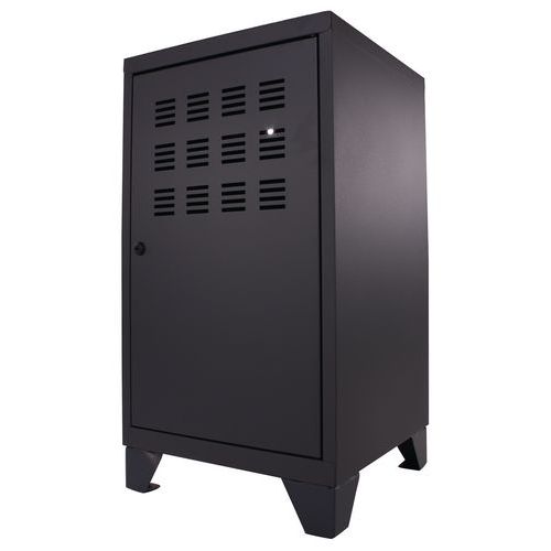 Grande facilità di utilizzo grazie alla sistemazione interna molto pratica con ripiani regolabili. Chiudete l'armadio con una serratura. Sistemate questo armadio dalle linee sobrie ed eleganti dove desiderate