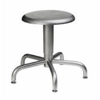 - Sgabello inox con piedini e seduta regolabile in altezza da 500 a 650 mm tramite vite senza fine.