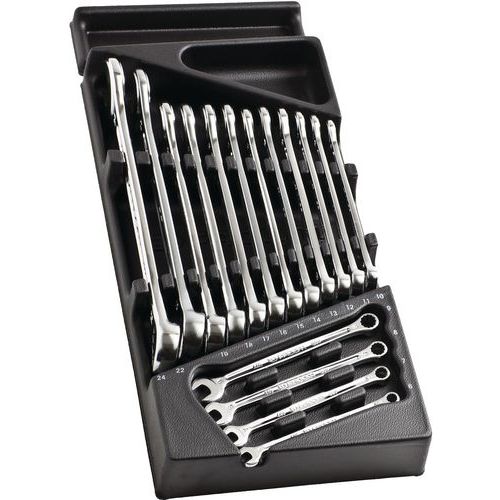 | Descrizione | Modulo 16 chiavi combinate ogv da 6 a 22 e 24 mm, Rif. Fabbricante: MOD.440-1, N. di pezzi: 16 |