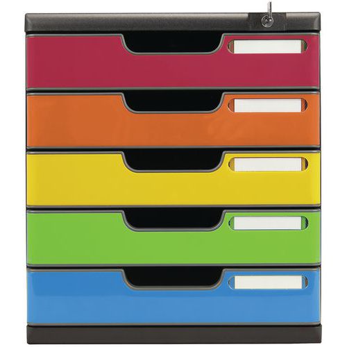 Modulo di archiviazione Iderama con cassetti chiudibili a chiave. Modulo elegante e funzionale. Articolo ideale per l'ufficio o la scuola. Ecologico. Modulo incastrabile e impilabile. Prodotto realizzato in plastica riciclata dai rifiuti domestici. Possibilità di bloccare contemporaneamente i cassetti grazie a una serratura. Modulo certificato Blauer Engel (in italiano: Angelo Blu).