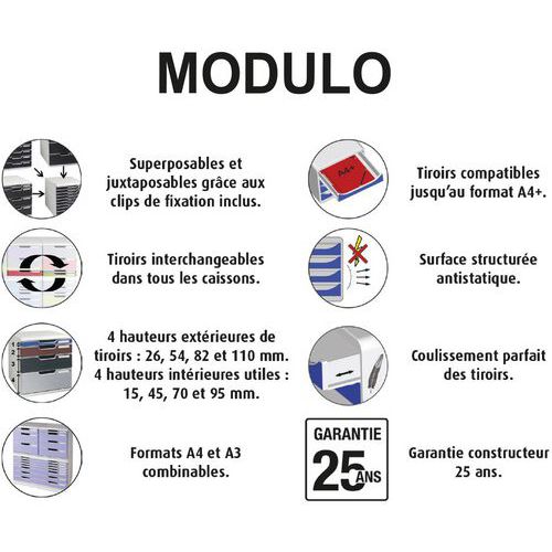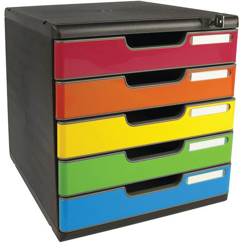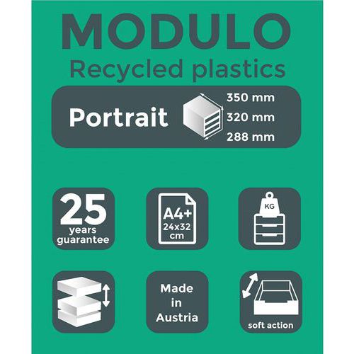 Modulo di archiviazione Iderama con cassetti chiudibili a chiave. Modulo elegante e funzionale. Articolo ideale per l'ufficio o la scuola. Ecologico. Modulo incastrabile e impilabile. Prodotto realizzato in plastica riciclata dai rifiuti domestici. Possibilità di bloccare contemporaneamente i cassetti grazie a una serratura. Modulo certificato Blauer Engel (in italiano: Angelo Blu).