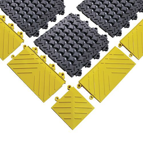 Griglia in PVC resistente, protegge i vostri suoli con un effetto antifaticante eccezionale grazie alla sua composizione esclusiva e al design flex. Tappeto personalizzabile per creare la vostra forma e dimensioni ideali. Assemblaggio fisso e permanente che garantisce una zona stabile e unita. Disponibile con bordi smussati per prevenire cadute e inciampi e rendere sicuro l'accesso al tappeto. Sistema di scarico a fori con forma rotonda con diametro di 22 mm per facilitare l'eliminazione di liquidi e detriti dell'area di lavoro senza ostruzioni, lasciando la superficie sgombra.