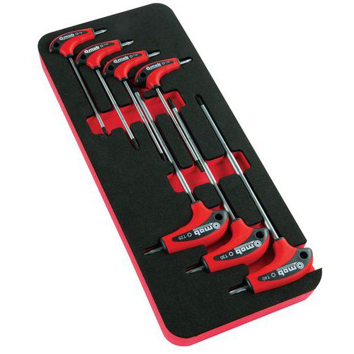 | Descrizione | Modulo in espanso 7 chiavi maschio Torx a T, Rif. Fabbricante: 9821007001, N. di pezzi: 7 |