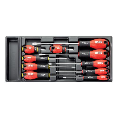 | Descrizione | Modulo in termoformato assortito, N. di pezzi: 10, Materiali: Acciaio, Altezza totale: 45 mm |