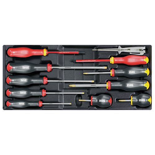 | Descrizione | Modulo in termoformato assortito, N. di pezzi: 11, Materiali: Acciaio, Altezza totale: 45 mm |