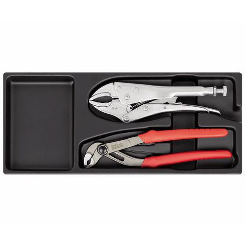 | Dati tecnici | Fornito di: 1 pinza regolabile autobloccante con ganasce concave e 1 pinza regolabile semiautomatica |