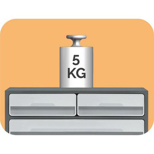 Modulo MoovUp maneggevole, per rispondere a qualsiasi esigenza lavorativa. 2 grandi cassetti per riporre tutta la cancelleria (penne, calcolatrici, blocchi note A5,…). Con accessori informatici (hard disk esterno, chiave USB, mouse…), documenti fino al formato 24x32 cm, tablet e pc portatile fino a 14. Capacità del cassetto grande 328x245 H 40 mm. Possibilità di catalogazione e personalizzazione dei cassetti con un pennarello a inchiostro a base d'acqua. Scorrimento perfetto con finecorsa. Ultra robusta, può funzionare anche come supporto per schermi (fino a 5 kg) e favorire una corretta postura. Una porta anteriore consente l'installazione di un cavo di sicurezza antifurto. Sovrapponibile in maniera perfettamente stabile su più livelli grazie a 4 rilievi e tacche integrati.