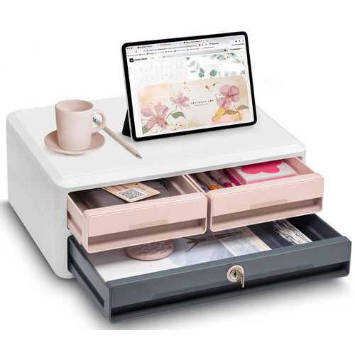 Conforme alle normative RGPD: una serratura consente di chiudere i 3 cassetti e una tacca di sicurezza sul retro consente l'installazione di un cavo antifurto (non fornito).