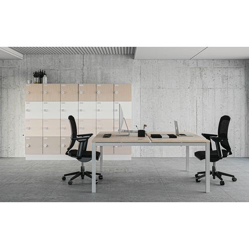 Armadio portavalori, ideale per riporre gli effetti personali o il materiale da lavoro. In ripiani melamminici con sp.16 mm. Profili in ABS antiurto da 2 mm. Scomparto con dimensioni: P42,5 x H37 x L37 cm. Anta con maniglia con codice, cerniere ammortizzate e portaetichette. Armadio dotato di piedini di regolazione, base di rialzo disponibile su richiesta. Realizzato per favorire l'ufficio flessibile e il coworking. Per lavorare in piena mobilità e collaborare agevolmente con i colleghi.