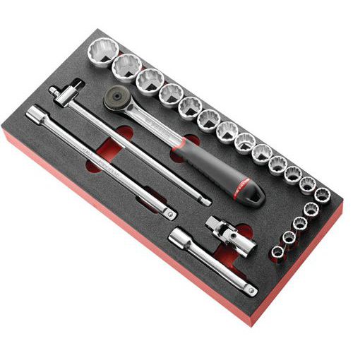 | Descrizione | Modulo schiuma chiavi a bussola da 1/2 12 pollici, Rif. Fabbricante: MODM.S161-212U, N. di pezzi: 23 |