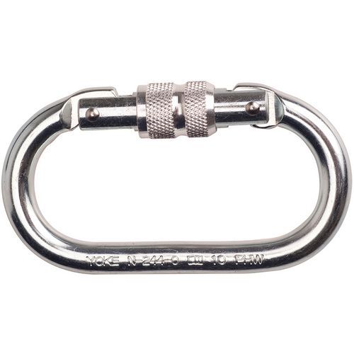 | Descrizione | Moschettone a ghiera, Materiale: Acciaio, Apertura: 19 mm, Peso: 230 g, Resistenza alla rottura: 25 kN |