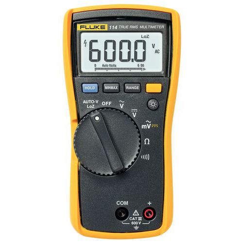 - Questo multimetro è destinato ai tecnici dell'assistenza sul campo ed è adatto per test elettrici ed elettronici nonché per test industriali. Compatto e pratico, a vero valore efficace, il Fluke 115 può essere utilizzato facilmente con una sola mano, offrendo un'interessante flessibilità in loco. La retroilluminazione dello schermo sarà un plus per le applicazioni in ambienti bui. Livello di protezione: 600 V CAT III. Display 6.000 punti retroilluminato. Misurazione della tensione fino a 600 V (larghezza di banda: da 45 Hz a 1 kHz).