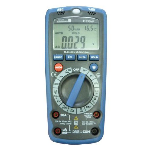 | Descrizione | Multimetro digitale FI 210MP, Schermo: 4000 punti, CA intensità max.: 10 A, Resistenza max.: 40 MOhm |