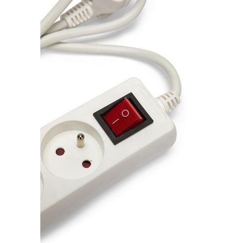 Multipresa 4x16A con interruttore, 1m. Protezione bambini e interruttore luminoso. Certificato NF. Potenza max 3680W su 230V. Pratica per tutti i collegamenti elettrici in casa.