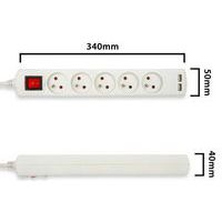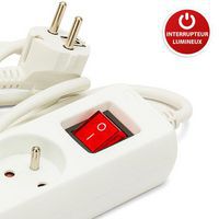 Blocco multipresa a 3 o 5 prese con porta USB. Massima potenza ammessa: 3680 Watt. Porta USB 5V CC in uscita. Corrente d'uscita totale: 2,1A. Interruttore luminoso. Lunghezza cavo 1,5 m.