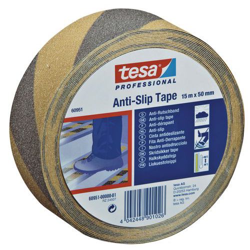 | Descrizione | Nastro adesivo antiscivolo nero/giallo, Spessore totale: 810 µm, Lunghezza: 15 m, Larghezza: 50 mm |