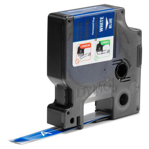 Nastro di etichette autoadesive industriali in vinile Rhino 12 mm x 5,5 m. Stampa in nero su fondo blu per etichettatrici Rhino e LabelManager. Etichetta adesiva di qualità industriale resistente all'umidità e alle temperature estreme, ai raggi ultravioletti, ecc. Adatta alle superfici piane o goffrate, a cavi o cartellini. Il testo dell'etichetta non sbava, non lascia macchie e non sbiadisce. Retro spaccato, si stacca facilmente per consentire una rapida applicazione dell'etichetta. Compatibili con le stampanti DYMO LabelManager e Rhino. Etichette autoadesive in vinile industriali DYMO Rhino 12 mm x 5,5 m. Stampa in nero su fondo blu per etichettatrici Rhino e LabelManager.