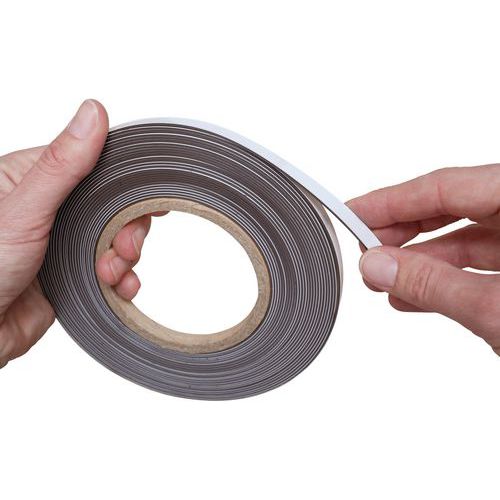 Nastro di segnalazione magnetico flessibile, spessore 1 mm, diverse larghezze disponibili. Su misura: taglio della lunghezza desiderata con forbici normali. Resistenza 42 g/cm². Ideale per cambiare la marcatura di scaffali metallici in magazzini o punti vendita.