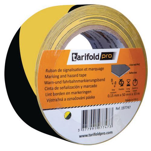 Nastro segnaletico adesivo Tarifold, Colore: Nero/giallo, Larghezza totale: 50 mm, Lunghezza totale: 33 m