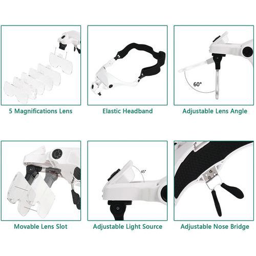 Lente di ingrandimento professionale con 5 obiettivi interscambiabili: 1.0X, 1.5X, 2.0X, 2.5X, 3.5X., ideale per modellismo, riparazione di orologi, ricami, dentista, lavori di miniatura.