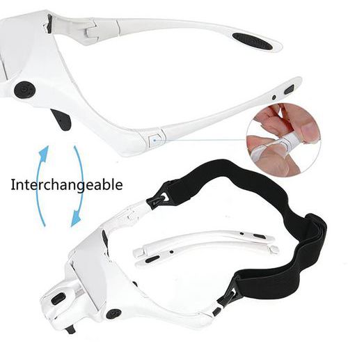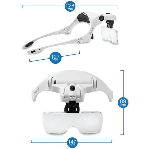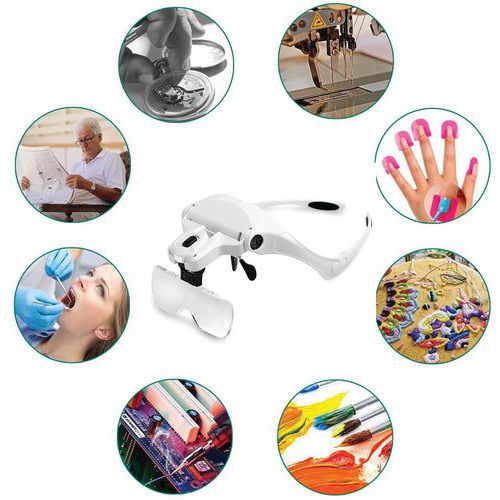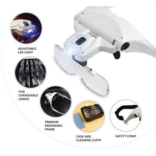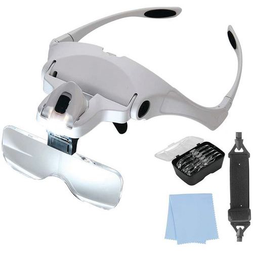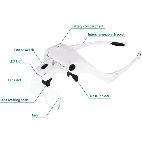 Occhiali con lente d'ingrandimento con 5 diottrie interscambiabili, Flusso luminoso: 12 lm