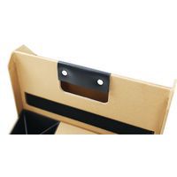 La qualità e la robustezza del cartone (1200 g) consentono una capacità di fino a 4 kg (pc portatile, quaderno 34x32, tastiera compatta, piccoli articoli di cancelleria,…).