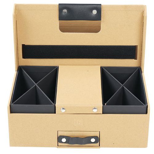 Finiture: l'armonia dei colori e la qualità dei materiali come le maniglie in pelle donano a questo tool box un tocco di eleganza e di raffinatezza per la vostra scrivania.