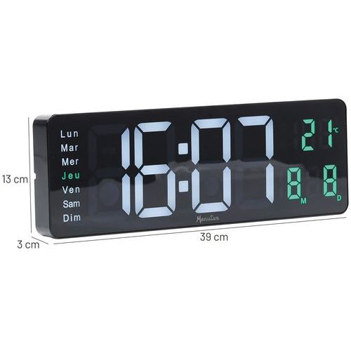| Descrizione | Orologio da parete a led rettangolare, Visualizzazione dell'orologio: Numerica, Forma: Rettangolo |