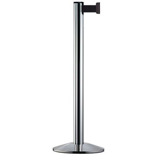 Paletto con nastro retrattile ideale per la delimitazione delle file d'attesa o l'accesso a manifestazioni ed eventi. Base zavorrata per una stabilità ottimale. Per uso interno ed esterno.
