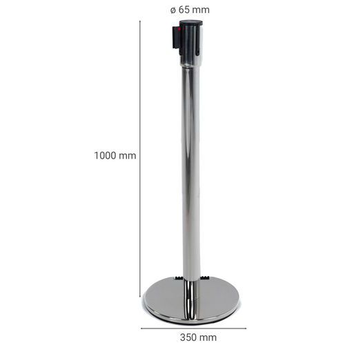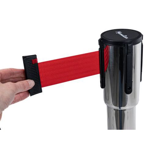 Paletto cromato con nastro 5 m - Base con rotelle - Manutan Expert