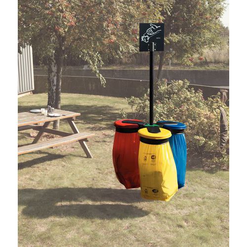 | Descrizione | Paletto e base per porta-sacchi, Materiale: Metallo, Colore: Grigio, Altezza: 90 cm, Modello: 3 scomparti |