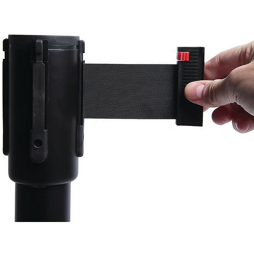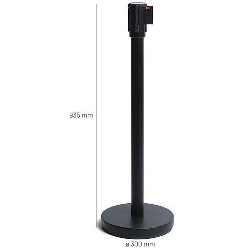 | Descrizione | Paletto in acciaio nero con nastro 2,5 m nero, Ambiente di utilizzo: Interno, Cinghia colore: Nero, Cinghia |