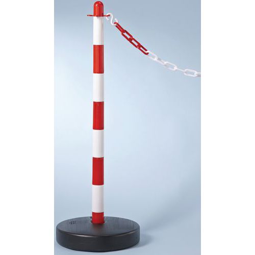 Paletto in plastica su calotta rotonda_Mottez, Palo Ø: 3.9 cm, Base Diametro: 30 cm, Colore: Rosso/nero