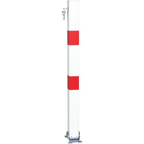 Paletto quadrato da fissare nel terreno per delimitare corsie di traffico, percorsi pedonali o parcheggi. Uso esterno possibile grazie alla sua zincatura. Buona visibilità grazie alle sue strisce catarifrangenti. Facile installazione. Certificato TÜV.