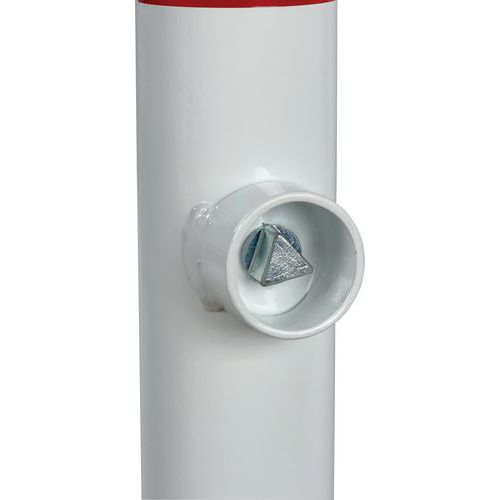 | Descrizione | Paletto rotondo in acciaio, Tipo prodotto: Con occhielli, Palo Ø: 60 mm, Colore: Rosso/bianco |