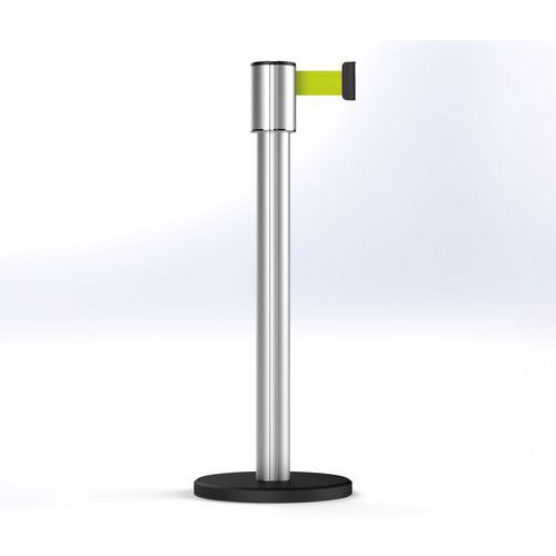 Paletto Storetrac anodizzato con nastro da 6 m. Sistema di sicurezza efficace che consente di delimitare rapidamente le zone. Meccanismo con nastro, con freno automatico. Base rinforzata e zavorrata per una stabilità impeccabile. Uso interno ed esterno.